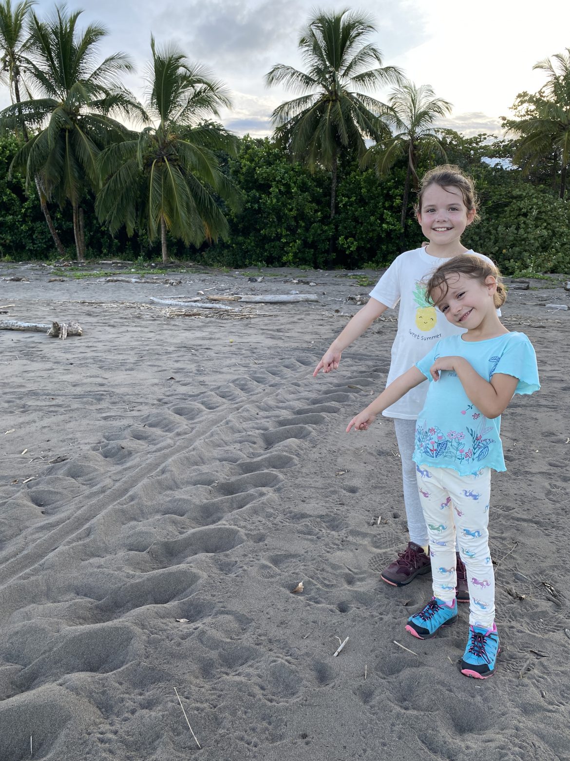 Es war stockdunkle Nacht, als wir durch den Jungel liefen. Es regnete und wir haben unsere Regenponchos angezogen. Wir waren auf dem Weg zu einer Schildkröte 🐢, welche die Ranger gesehen haben. Als wir ankamen hiess es, dass wir erst die Schildkröten anschauen dürfen wenn sie anfängt Eier zu legen, weil sie es sonst merken würde und dann geht sie zurück ins Meer. Als sie das Loch gegraben hatte und Eier legte, durften wir ihr zusehen. Sie war riesig, so gross wie ich. Die Eier waren so gross und rund wie Pingpong Bälle. Am Ende, als sie ihre Eier fertig gelegt hatte, buddelte sie das Loch ein bisschen zu. Also naja, so gut wie es ging, wenn man es als Schildkröte mit den Hinterbeinen zu macht. Dann hat sie es getarnt, für das hat sie mit dem Sand herum gespritzt.