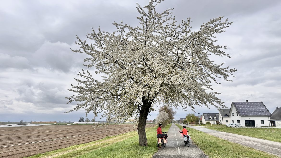 Man kann halt nicht alles haben. Landschaftlich war es aber richtig schön heute. Wir haben uns wegen der Landschaft für die französische Seite entschieden und wurden nicht enttäuscht. Die Regenkleider liessen wir gleich an, die helfen auch bei Wind. Hier und da machten wir noch einen Abstecher um uns etwas anzuschauen. Diese „unnötigen“ Kilometer kumulierten sich dann aber bis zum Abend. Wir entschieden uns, in Zukunft nicht mehr die vorgeschlagenen Tagesetappen zu fahren, sondern unsere eigene Distanz zu wählen. Heute war die Strecke echt zu lange. In Strassburg legen wir nun einen Tag Pause ein, bevor wir weiter nach Norden ziehen. Wer sich übrigens fragt, weshalb wir einen Kindertransportanhänger dabei haben, da ist unser Gepäck drin. Voll überladen wie immer 🙂